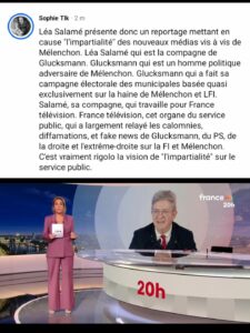 Qu’on me comprenne bien : je ne suis pas ici en train de défendre LFI et Jean-Luc Mélenchon. Ce n’est pas le sujet. Je dis simplement que ces exemples montrent comment on manipule l’information ; que c’est comme cela que s’installe jour après jour une idéologique nauséabonde fondée sur l’allusion plutôt que sur les faits, et où le mensonge devient une banale vérité.