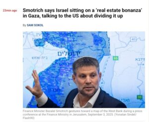 Mais c’est toujours plus éclairant quand c’est dit sans fard par un responsable en fonction. Le ministre israélien Bezalel Smotrich a ce mérite : il ne s’encombre pas des chichis habituels — vous savez : le droit international, les conventions humanitaires, et toutes ces futilités…
