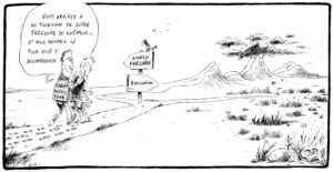 Merci à Stiki pour les illustrations (NB : cet excellent dessinateur de presse a lui aussi été exclu du chômage. Il cherche du boulot ! Si vous êtes en mesure de lui procurer du taf et de lui commander des dessins, écrire au journal qui transmettra).