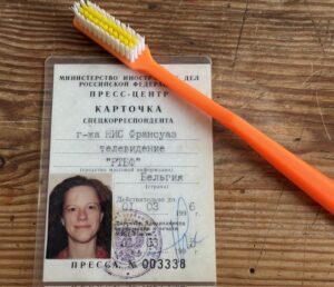 Et quelques images : dont l’une pour dire J’ai les boules, et l’autre, deux petits souvenirs de mes reportages en URSS, une kartotchka et une brosse à dents achetée je ne sais plus où, et dont les poils trop durs t’arrachent les gencives quand tu t’essaies à chanter l’un ou l’autre discours de propagande. Bon, et si l’on créait une série de prix pour les mensonges à large diffusion ?
