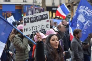 En 2021, Némésis, équipée d’un service d’ordre cagoulé armé de barres de fer et de gazeuses, avait attaqué la manifestation contre les violences faites aux femmes et s’en était pris à des manifestantes afghanes. Le 23 novembre 2024, le collectif était entouré d’un cordon policier et appuyé par les journalistes du média d’extrême-droite Frontières pour tenter d’initier une altercation avec les cortèges et organisations féministes.