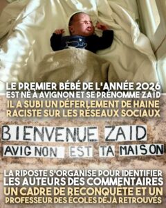 Dès le 1er janvier à 00h01, une nouvelle tendance a émergé à l’extrême-droite : harceler un nouveau-né. Le premier bébé de l’année est né et il s’appelle Zaïd.